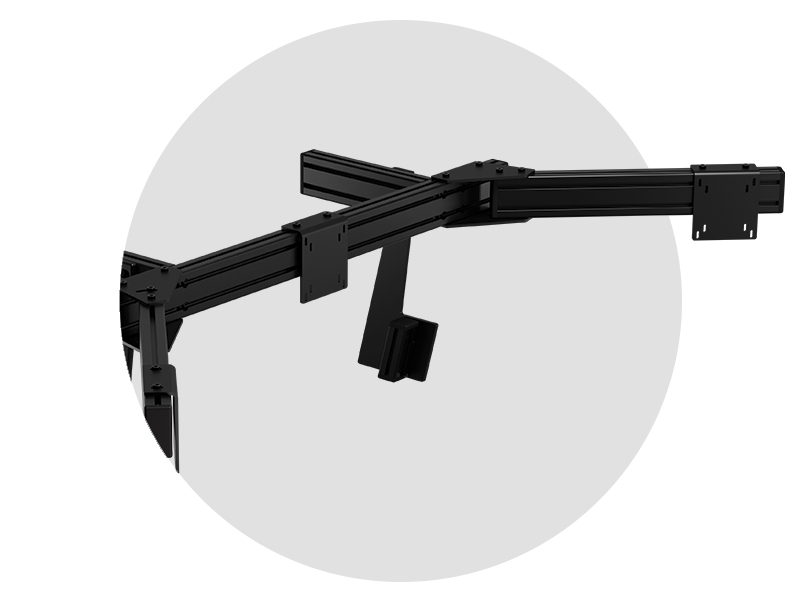 Mit diesem Add-On verwandelst du deinen Single Monitor Direct Mount in eine Triple Monitor-Konfiguration. Durch den Austausch des zentralen Profils und die Hinzufügung der seitlichen Profile kannst du dein Setup für drei Monitore erweitern und so noch mehr Immersion erleben.