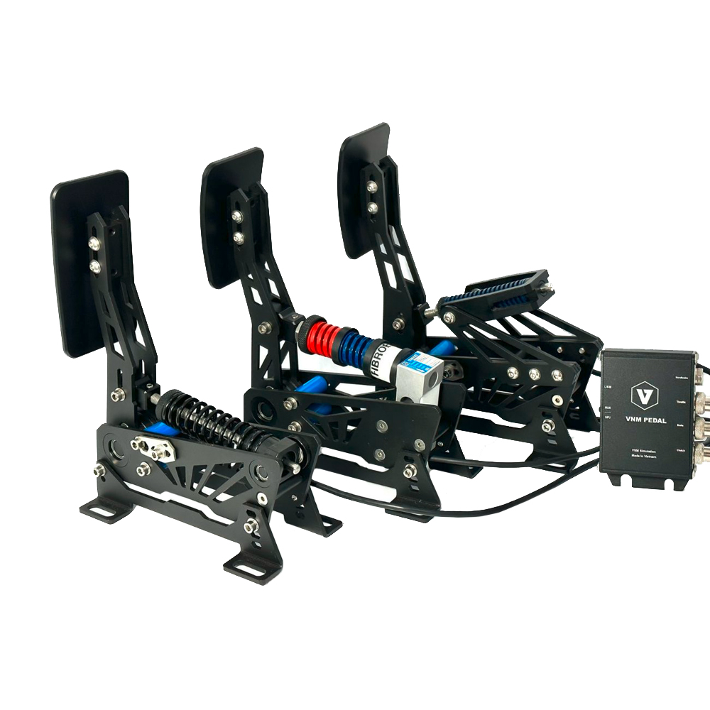 Das VNM Lite Pedalset kombiniert eine robuste Metallkonstruktion mit präziser Technik, um Simracern eine langlebige und anpassbare Lösung zu bieten. Mit einem 200-kg-Load-Cell-Bremspedal, kontaktlosen Winkelsensoren und einem intelligenten Steuerungsmodul ermöglichen das Pedalset ein präzises und realistisches Fahrgefühl – perfekt für anspruchsvolle Simulationsfahrer.